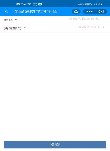 第六步:输入“姓名”和部门;教职员工选择“我校教职工”,学生选择所在系,点击提交即可开始学习