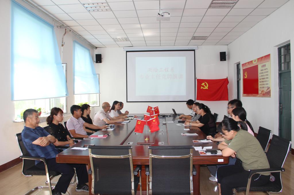 按照学校工作部署,结合学校领导干部选拔原则,测绘工程系于2018年7月10日召开了新一轮的专业主任竞聘大会,聘任岗位包括工程测量技术专业主任、测绘地理信息技术专业主任、摄影测量与遥感技术专业主任,我系领导班子成员、专业教师及全体辅导员参加了竞聘大会。