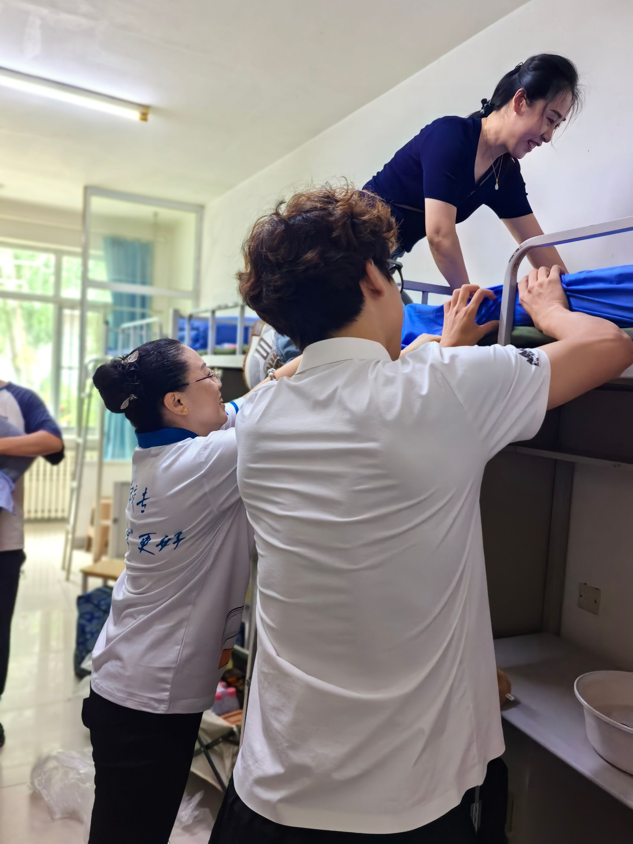 新生报到期间,系部领导班子带领教师团队深入新生公寓,与新生、家长沟通交流。系全体党员更是主动担当“行李搬运员”,从快递站将沉甸甸的行李箱搬至对应床位,用一趟趟往返、一次次接力,为新生筑牢入学“第一站”的温暖防线,让校园初体验满是安心。