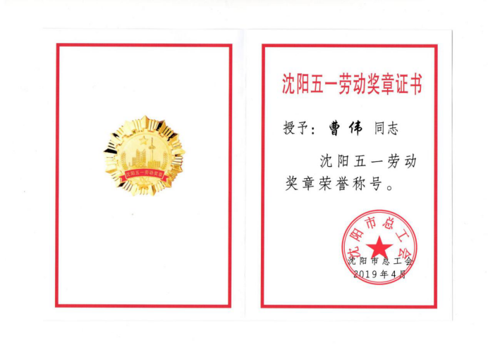 曹伟同志荣获沈阳五一劳动奖章