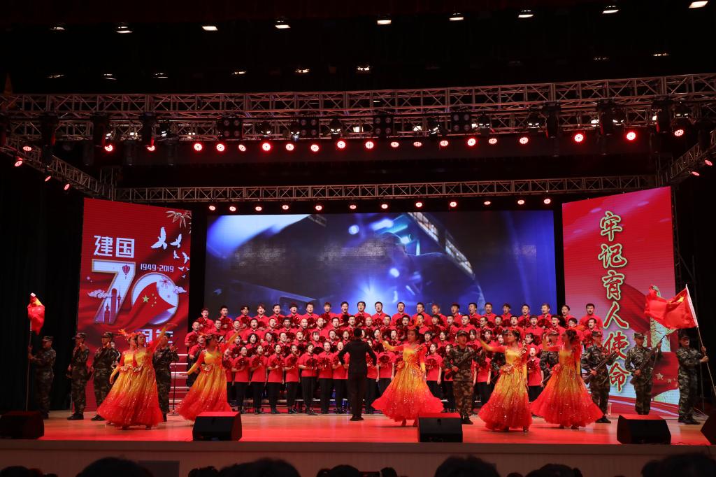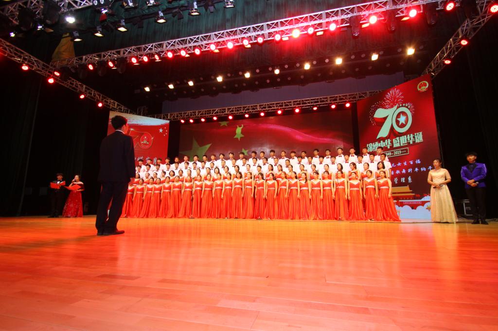 为热烈庆祝新中国成立70周年,进一步抒发师生员工的爱国热情,9月25日下午,由党委宣传部、工会、团委共同主办的庆祝新中国成立70周年“我和我的祖国”合唱比赛在校礼堂隆重举行。学校领导班子成员出席了本次活动。党委书记张亚军代表学校党委致辞。