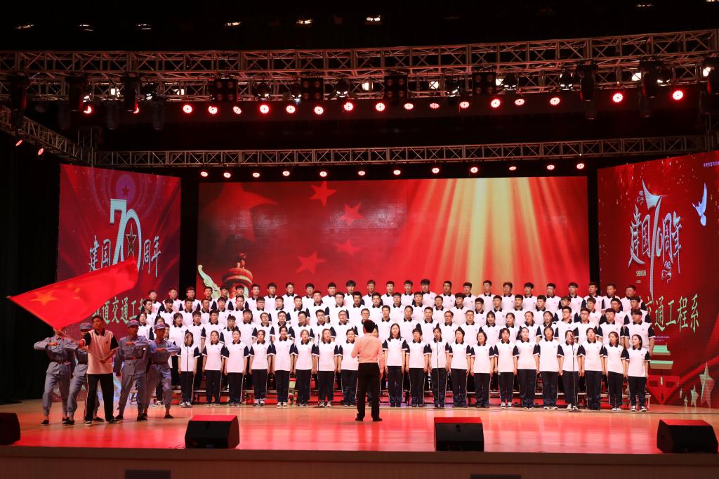 最后,全场师生起立齐声合唱《歌唱祖国》,台上台下激情互动,把现场气氛再一次推向了高潮。演出结束后,大家纷纷表示参与这次活动,抒发了爱国情怀,增强了集体凝聚力,展示了交专师生的良好精神风貌,增强了为学校发展和祖国富强再立新功的决心。