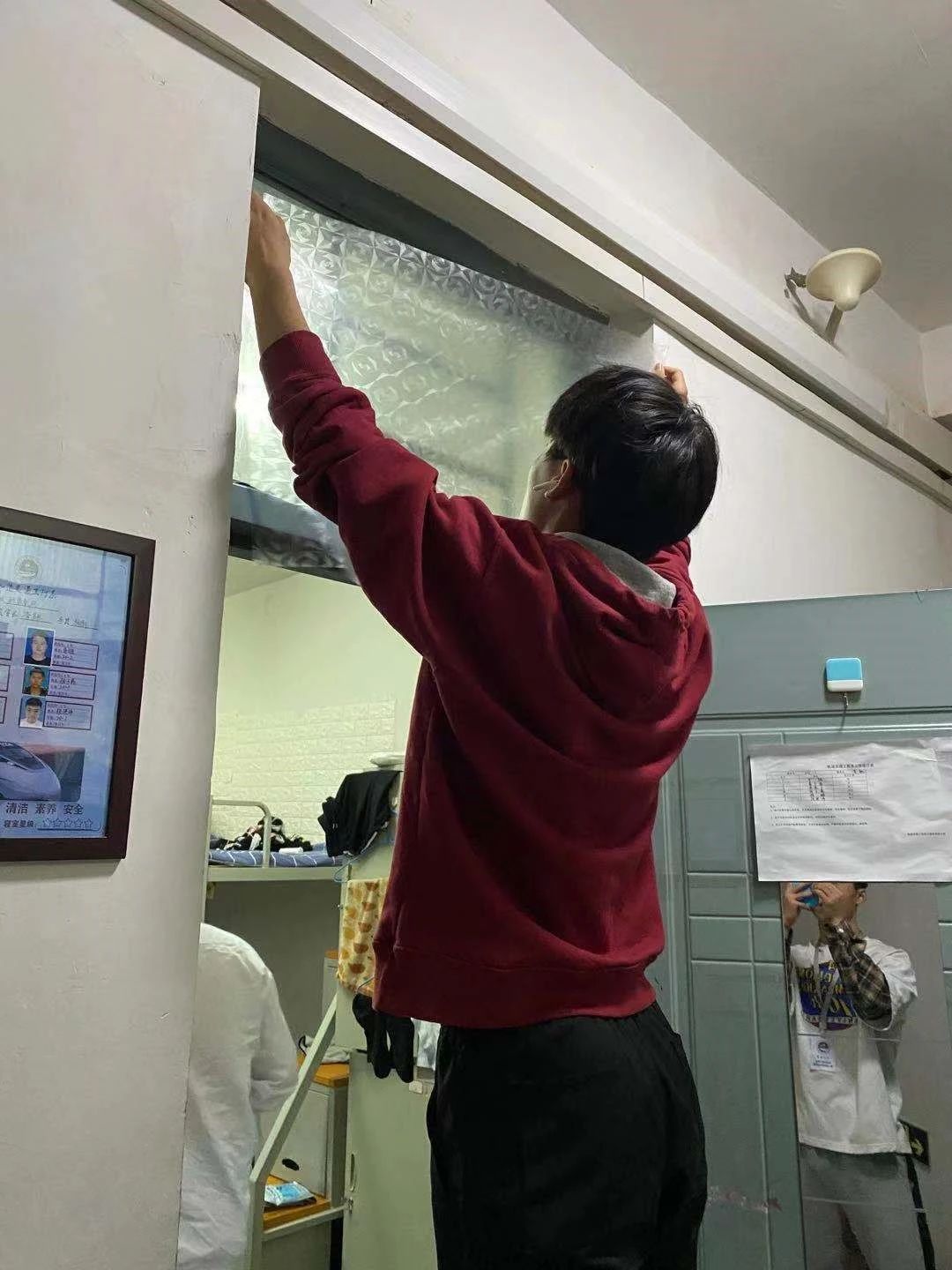 通过此次“贴窗户纸活动”体现了学校和老师对同学们的关心。在活动中也能体现出了同学们之间的分工合作和团结。此次活动也使我们的宿舍变得更加舒适温馨,宿舍氛围变得更好。
