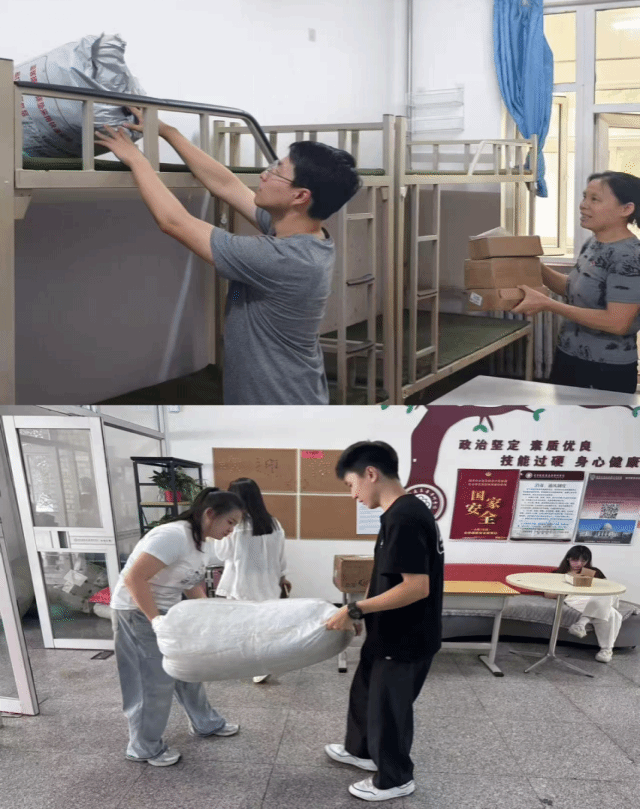 活动中,志愿者们首先从校园行李驿站将提前寄达的新生行李集中取出、分类整理,并标注好对应宿舍信息。随后,系部党员教师们接过接力棒,分组前往各公寓楼,将一件件行李精准运送至新生的指定床位。从沉重的行李箱到打包好的被褥、生活用品,老师们分工协作,扛着、搬着、抬着,穿梭在公寓楼道间,汗水浸湿衣衫却始终保持着热情。尽管新生尚未到校,但党员教师们用提前到位的服务,为学子们铺好了入学“第一程”的温暖之路。