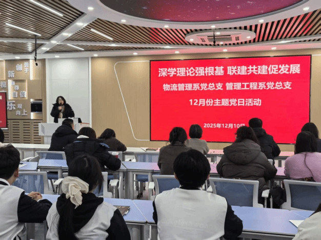 根据学校《学习宣传党的二十届四中全会精神工作方案》《关于成立学习宣传党的二十届四中全会精神教师宣讲团的通知》以及《关于开展12月份主题党日活动的通知》等相关文件要求,2025年12月10日,我系党总支携手物流管理系党总支,于素质中心309会议室共同举办了一场以“深学理论强根基,联建共建促发展”为主题的12月份主题党日活动。此次活动吸引了全体党员与入党积极分子的踊跃参与。