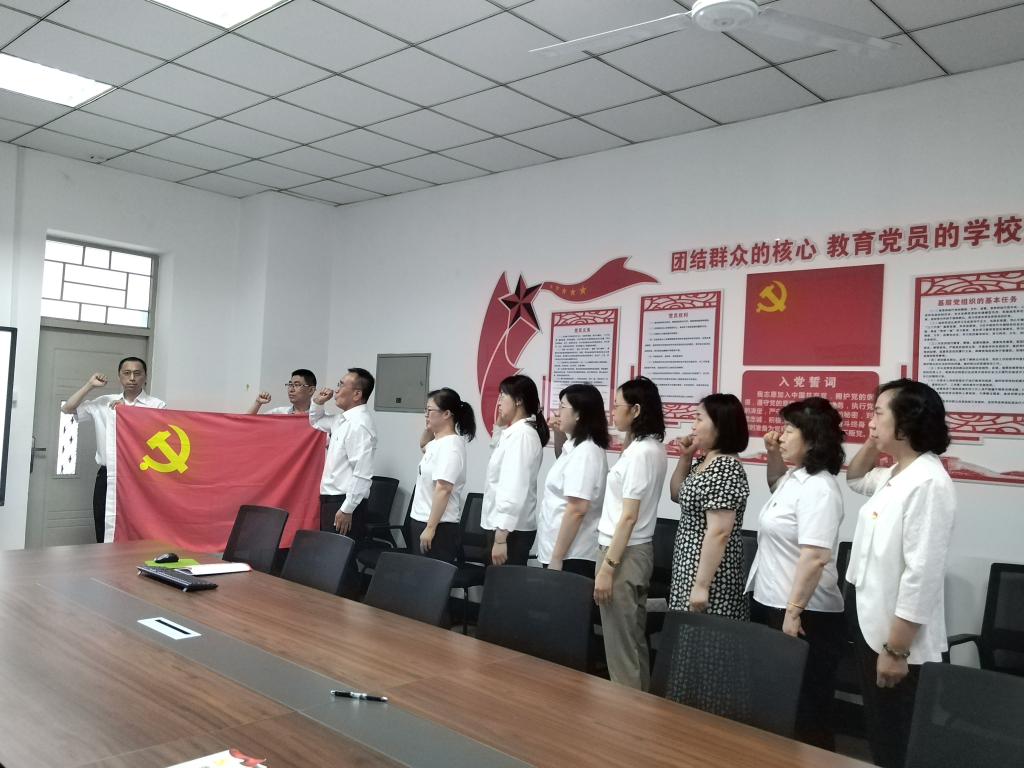 美育中心(基础教学部)党支部组织开展6月份党日活动,全体党员集体过政治生日,重温入党誓词。