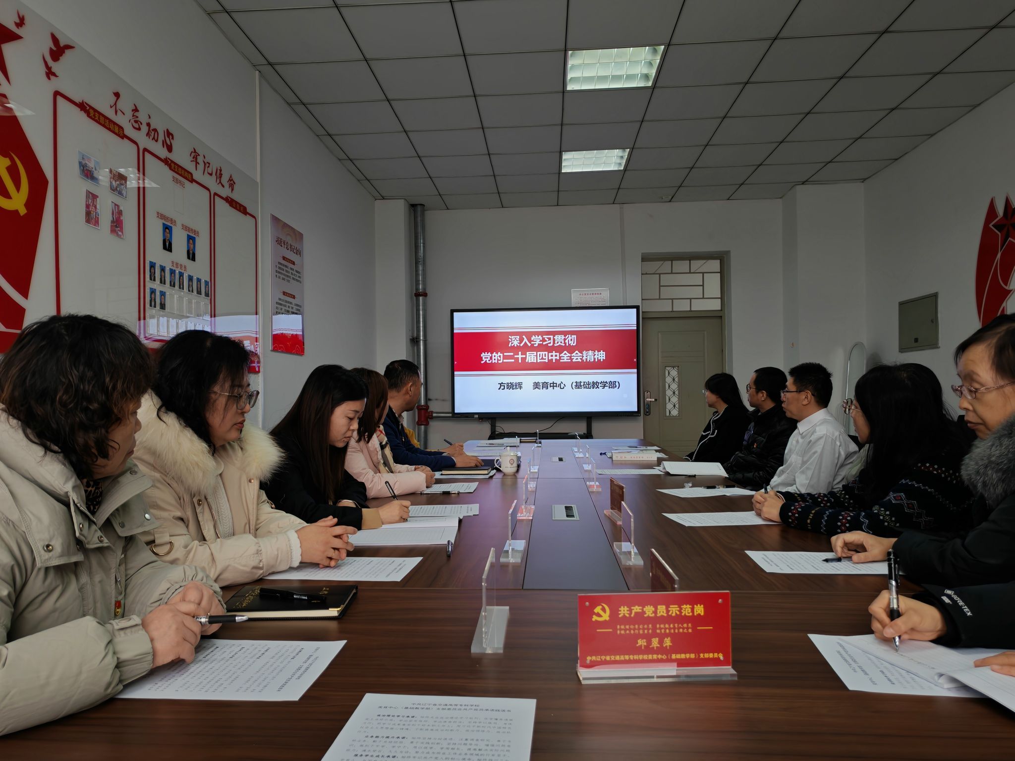 为深入学习贯彻党的二十届四中全会精神,引导全体党员将思想和行动统一到党中央决策部署和学校党委工作安排上来,2025年12月10日中午,美育中心(基础教学部)直属党支部在教学实验综合楼A座601会议室召开党的二十届四中全会宣讲报告会。部主任兼党支部书记方晓辉做宣讲报告。