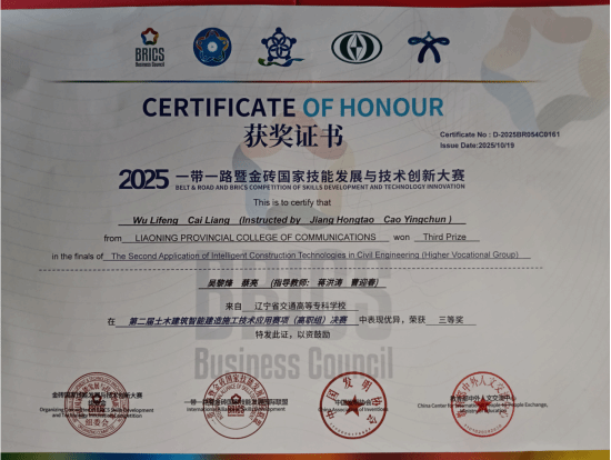 此次竞赛成绩体现了我校学生和教师的职业能力素养和人才培养质量,展示了学校高质量的教学成果和教育理念。建筑工程系将以此为契机,在土木建筑智能建造领域持续深耕,为建筑行业数字化转型提供强有力的人才支撑,为“中国建造”迈向智能化新时代贡献职教力量。