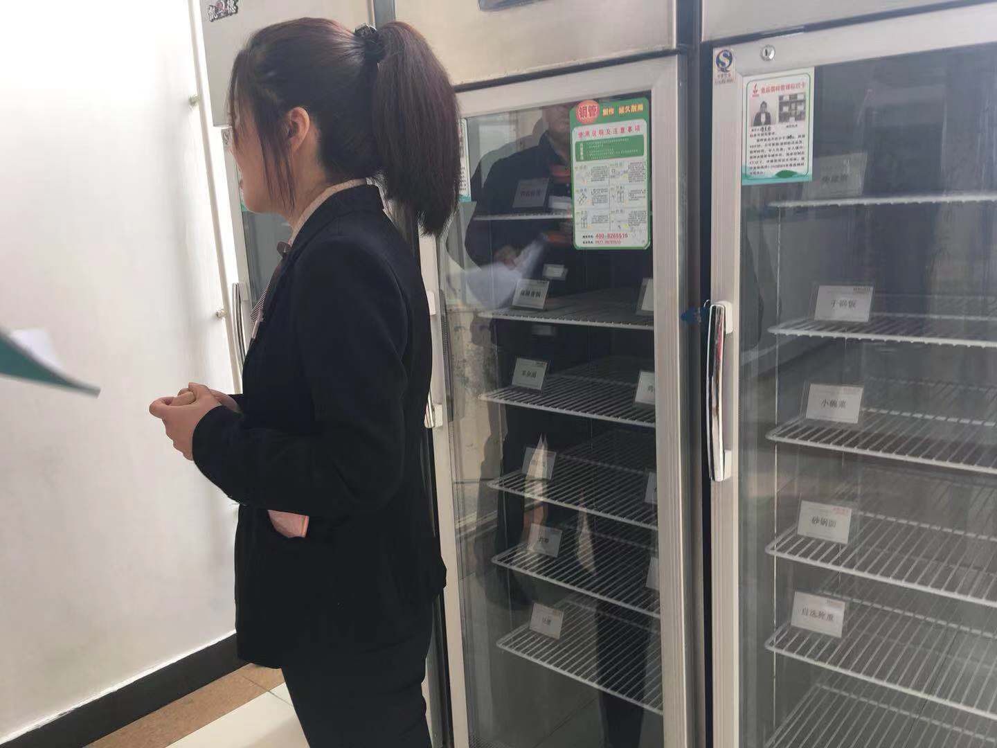 (2)食品留样不全(图14),开学当天早上食品缺样,经问询送样时间不固定,全由各点自己存放,储柜无锁,主要是因为开学当天开餐比较忙,已改正。