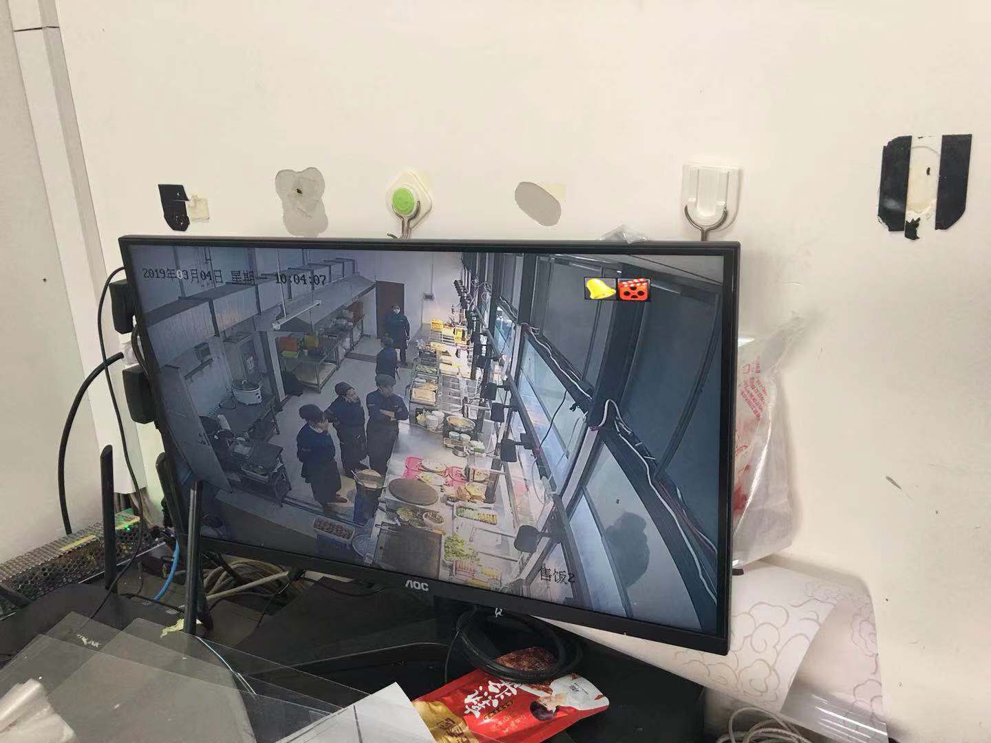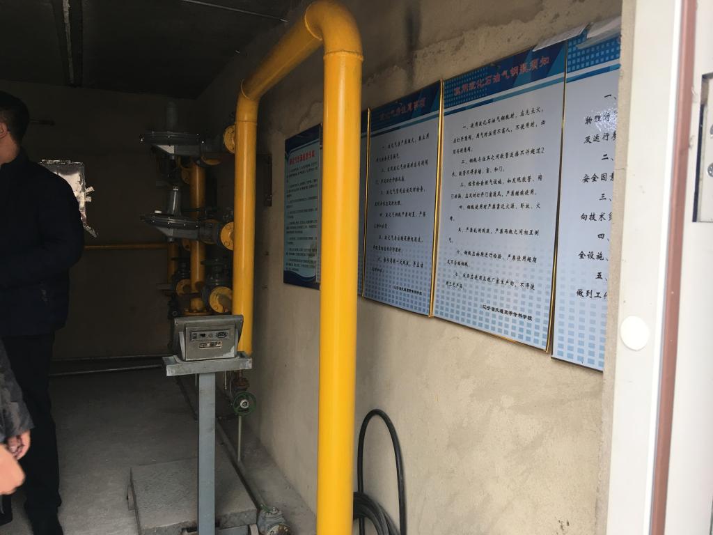 2.开学第一天,服务督导组会同安保处,对食堂开学前的准备情况进行了督导,包括液化气站(图10)的制度上墙、存放物品情况、排放通风情况等。开学前,食堂安装了设备确保入后厨需要划卡进入(图11),保证了后厨无外人随意出入;食品主材统一采购,集中调配(图12),安全卫生;管理室新安装了监控(图13),可以在办公室内看到后厨各部位工作情况。管理更加科学有效。存在问题主要有: