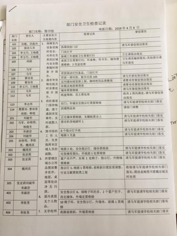 4.小件报修,除了在OA上有记载,部门也应记录好。涉及安全问题的场地或设施情况,要注意在问题出现后至维修前这段时间对场地的警示和圈围。