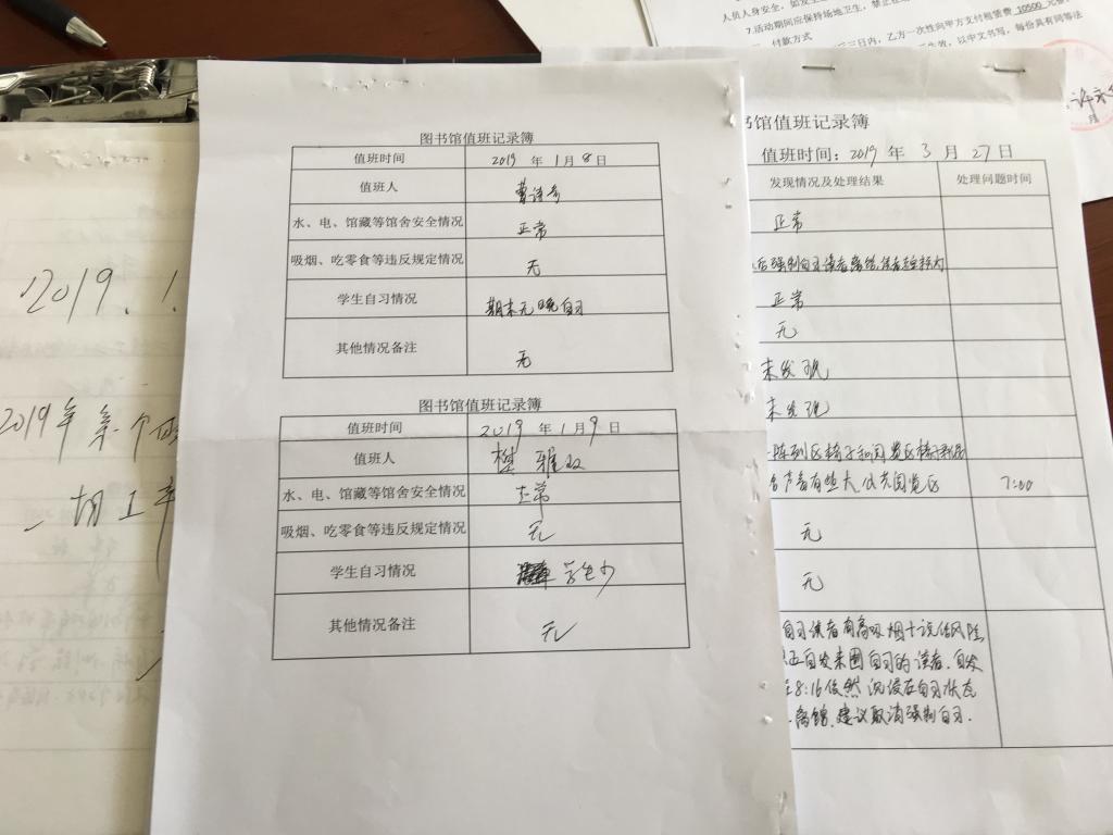 5.图书馆的值班人员工作记录,建议有问题处理意见。