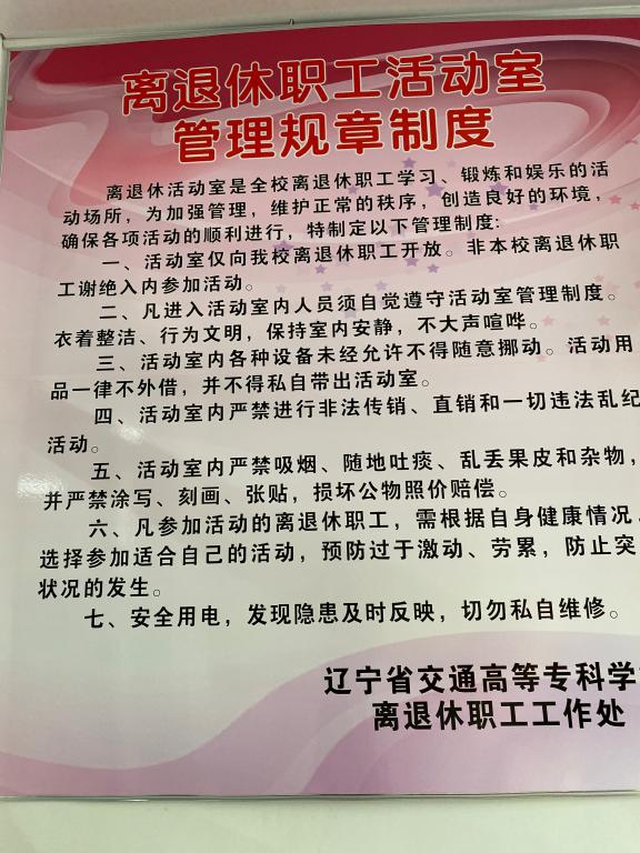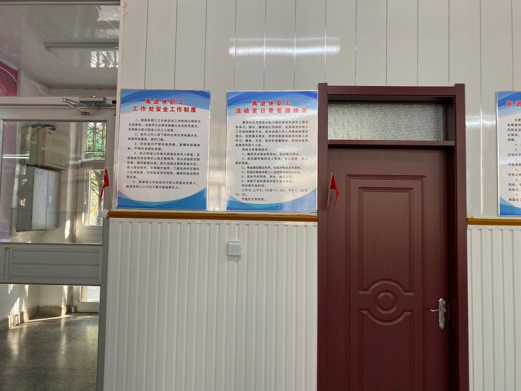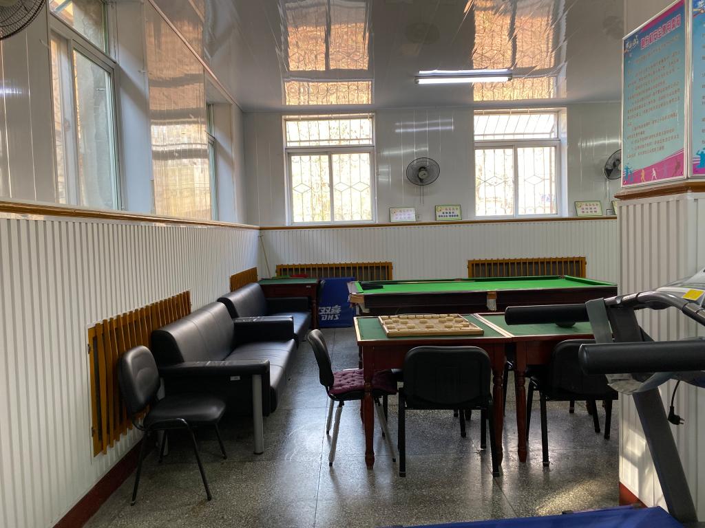 2.工作处活动室的环境有了较大的改观,重新刮了大白,顶棚烫了防水沥青,更换了护墙板和顶棚,更换了原来关不紧沉滞的大门,环境面貌焕然一新,室内变的宽敞明亮, 一些规章制度和标志上了墙(图8),整体文化氛围有了,维修了室内台球案、乒乓球台和健身器材等设备(图9),老同志们经常回来活动了,感到很温馨。