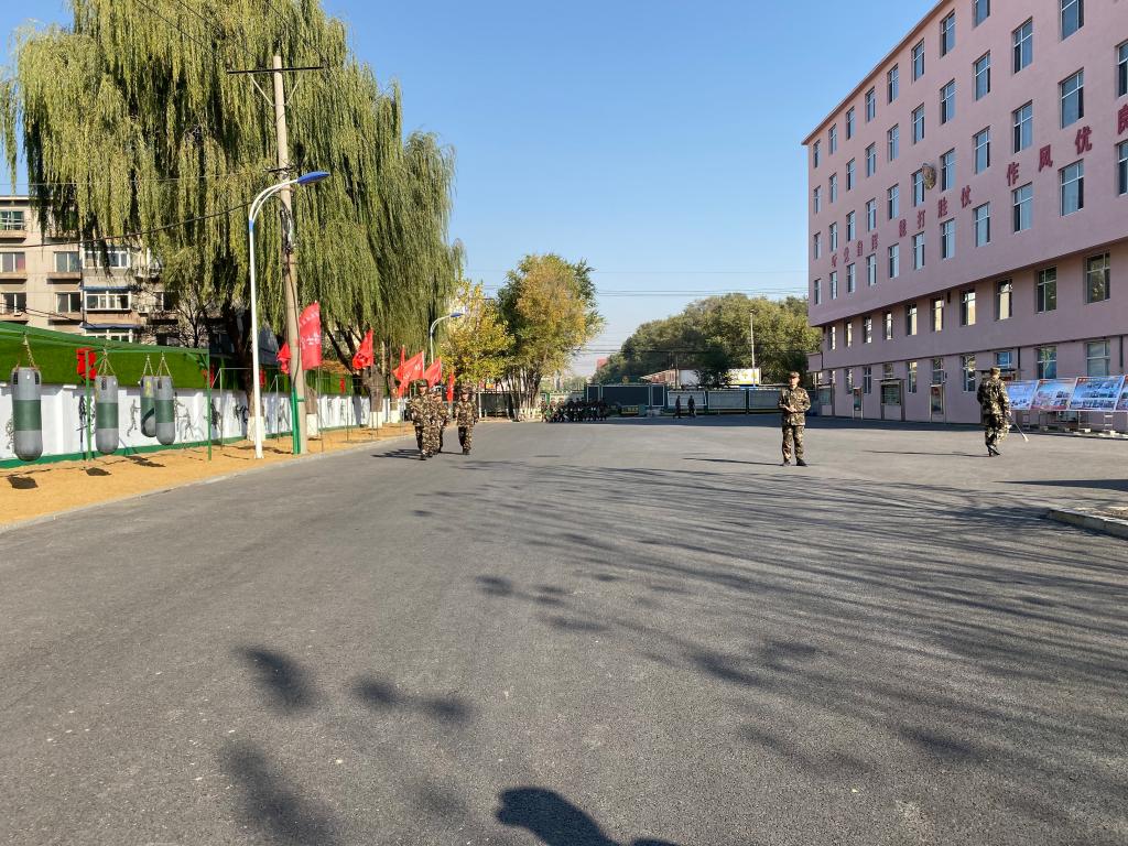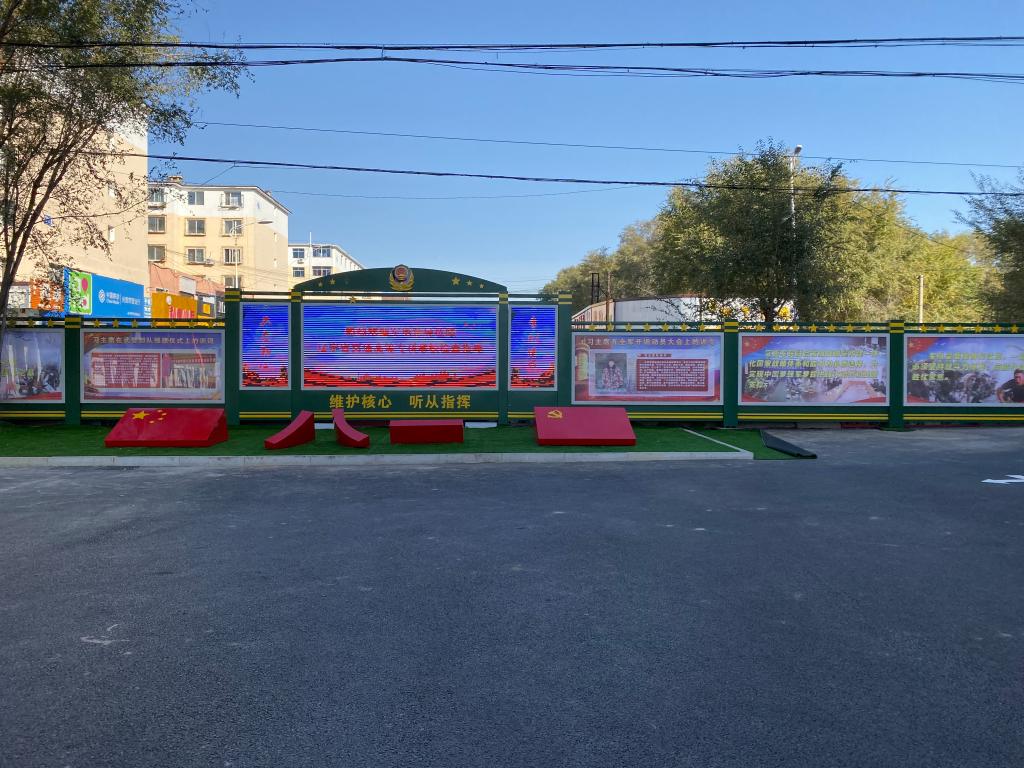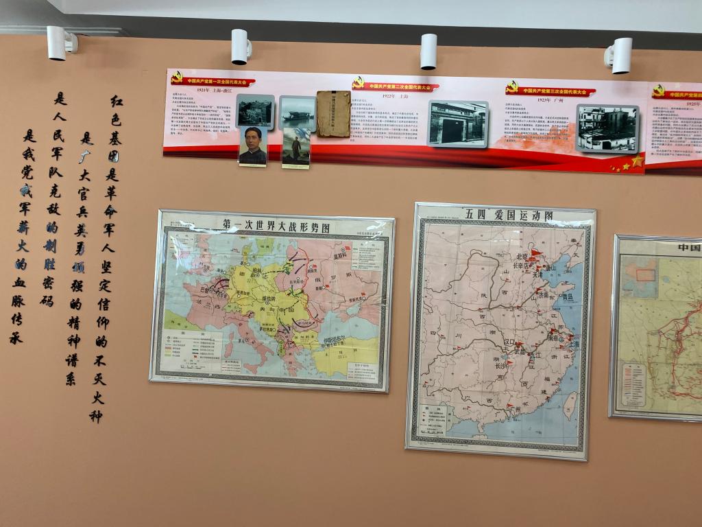 1.11月6 日 ,武警部队定向培养士官工作军地联席在我校召开,士班学生们对宿舍和周边环境重新整治,新增加了岗亭,新的展板和标语(图21-22 )。一楼大厅布置了军事史展厅(图23-24),各种教育教学材料和照片详实,摆放整齐,显示出学校和武警部队军事化管理水平和绿色军营的勃勃朝气。
