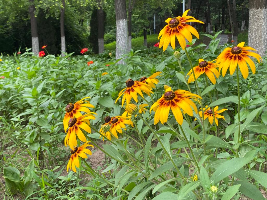 (1)过了4月份后,校后勤公司就开始了今年的绿化和校园环境清理工作。绿化方面完成了校内草花栽植、行道树、道路两侧各花点草花栽植39000多株(图1),南门立体花坛栽植五色草190平,花籽播种3000多平方米,虞美人、波斯菊、百日草、油菜花、野花组合、硫华菊、翠菊、鸡冠花、美人蕉栽植1000多株,紫玉簪1000多株,移植草花,鸡冠花,小向日葵,波斯菊,翠菊500多平。