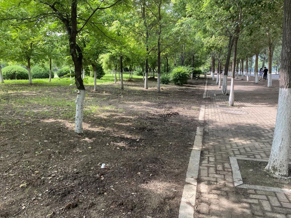 (2)绿化养护方面,校内草坪修剪每月两次,病虫害防治5至7月喷洒农药3次,灌木修剪每月2次, 树木修剪两个月一次。好多树果也陆续成熟了,桑椹、杏子、樱桃等都做了打药标记。入夏,校园景色宜人、风景如画的校园,学生们在校园内实习测绘、老师们也早早到校晨练,一幅美好情景书生画卷。