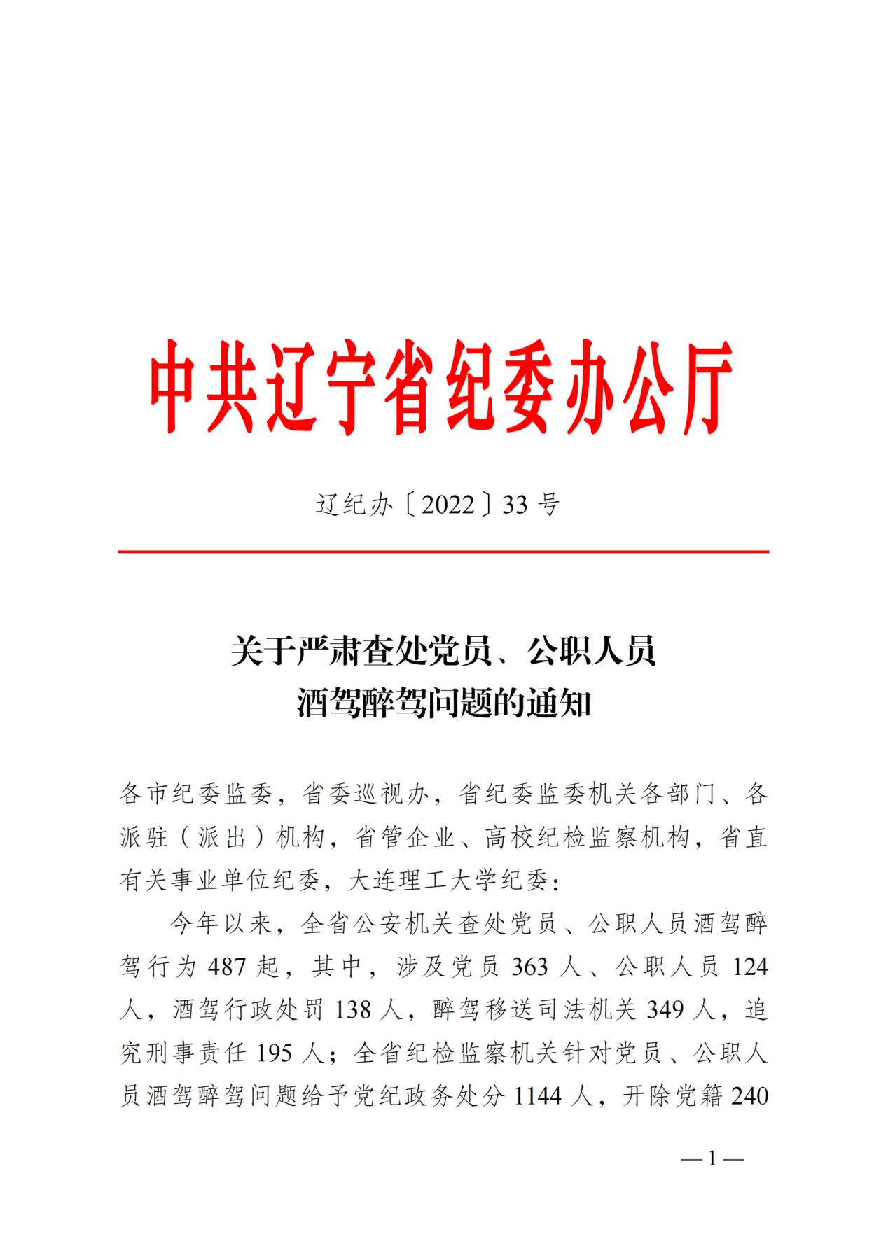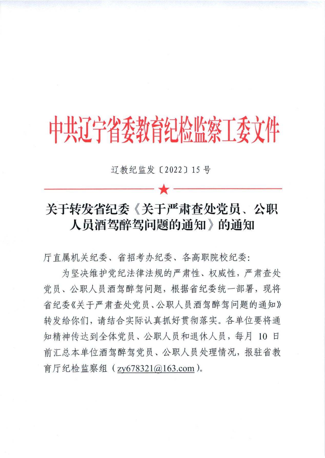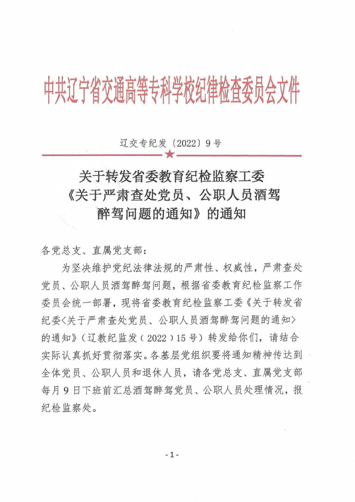 关于转发省委教育纪检监察工委《关于严肃查处党员、公职人员酒驾醉驾问题的通知》的通知