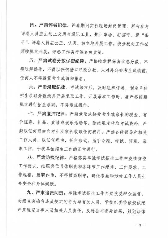 关于印发《欧亿体育单独招生工作纪律规定》的通知