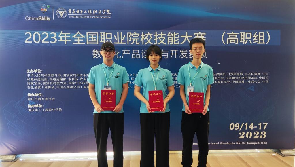 9月17日,2023年全国职业院校技能大赛(高职组)“数字化产品设计与开发”赛项在重庆电子工程职业学院举办,来自全国31个省市的60支高职代表队的180名选手同台竞技,经过激烈角逐,我校参赛队表现出色,荣获该赛项三等奖,同时也为学校再添一枚国赛奖牌。本次参赛选手由数字媒体技术专业周鑫海、姜博怀、影视动画专业丁梦阳三位同学跨专业组队,冯丹、王玉老师担任指导教师。赛场上,选手沉着冷静、操作娴熟,展现出精湛的技艺...