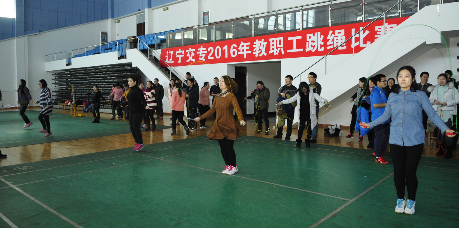 12月14日中午,辽宁交专2016年教职工跳绳比赛在体育馆举行。来自基层分会的18支代表队参加了比赛。开展跳绳比赛丰富了教职工的课余生活,增进了教职工之间的交流和了解,展现了我校教职员工良好的身心素质,以良好的精神面貌迎接新年的到来。最终,男子组:汽车工程系代表队以864分获得总分第一名;国际交流中心代表队以785分获得总分第二名;道桥工程系代表队以756分获得总分第三名。女子组:汽车工程系代表队以953分获得总分...