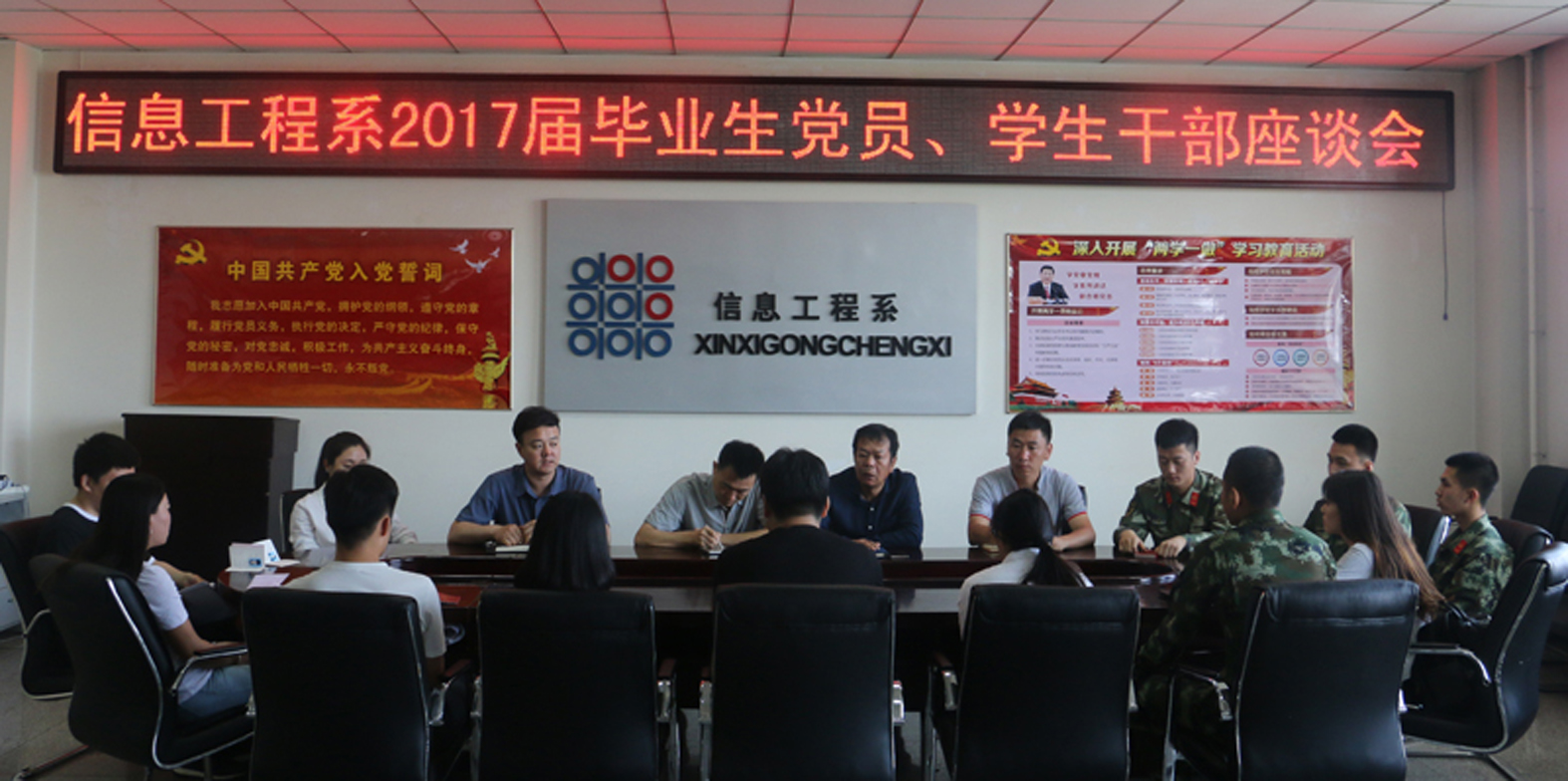 为深入掌握2017届毕业生学习、就业实习、生活状态,了解学生对学校以及信息工程系在教学、实训、日常管理等方面存在的问题和合理化建议,6月12日上午,在毕业前夕,信息工程系召开了毕业生党员、学生干部座谈会,会议由学工办主任李闯主持,系领导班子、毕业班级辅导员以及六个专业的毕业生党员、学生干部代表参加了座谈会。座谈会上,各位毕业生代表向与会领导、老师介绍了目前工作单位、工作岗位情况,畅谈了毕业实习期间个人...