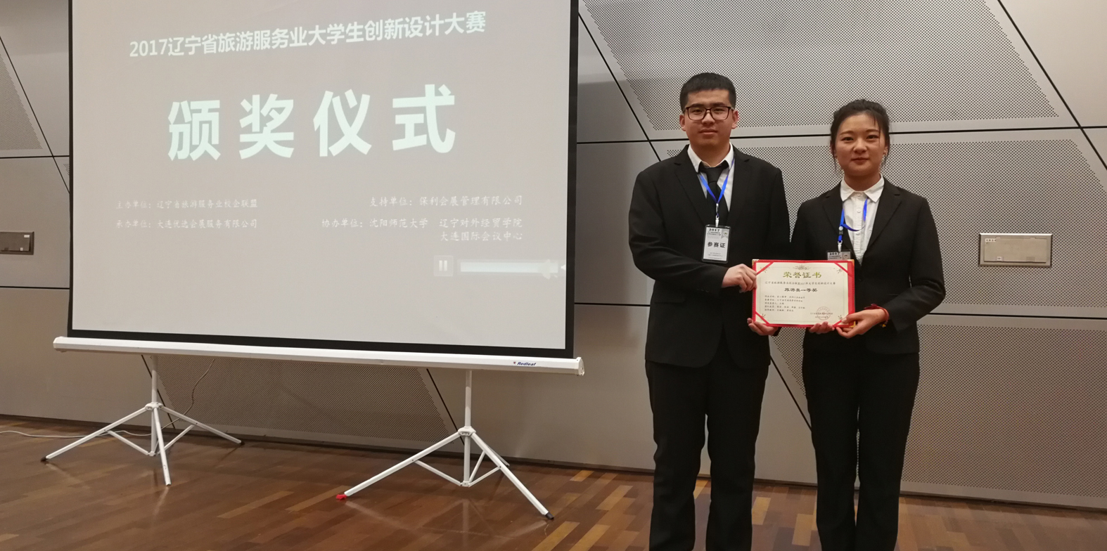 2017年12月21日,由辽宁省旅游服务业校企联盟主办的“2017辽宁省旅游服务业大学生创新设计大赛”总决赛在大连国际会议中心隆重举行。来自全省各高校的67项作品,经过专家初审、复审后,有21项作品进入决赛。经过激烈角逐,我系旅游管理专业学生凭借《匠心聚梦·沈阳工业旅游节》作品获一等奖,《愿你走过半生,归来仍是少年》获得三等奖。 本次比赛在王婉姝和崔剑生老师悉心指导下,在参赛同学的不懈努力下,经过反复沟通,修改...