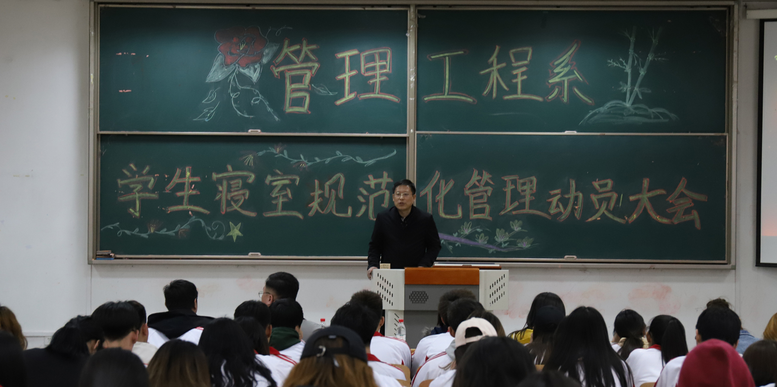 为了提高公寓管理水平,增强同学们对寝室管理认识的能力,我系于2019年4月3日下午两点召开学生寝室规范化管理动员大会。此次会议由许晨曦老师主持,系党总支书记富浩、副书记张宁,辅导员李蒨、许晨曦、孟繁浩老师以及18级17级各专业班级班委、寝室长代表,系学生会公寓部、学习部、体育部等170人参加。会议伊始,张宁副书记对管理工程系寝室规范化管理进行动员,引导学生提升日常生活自理能力和安全意识,完善宿舍安全管理责任...