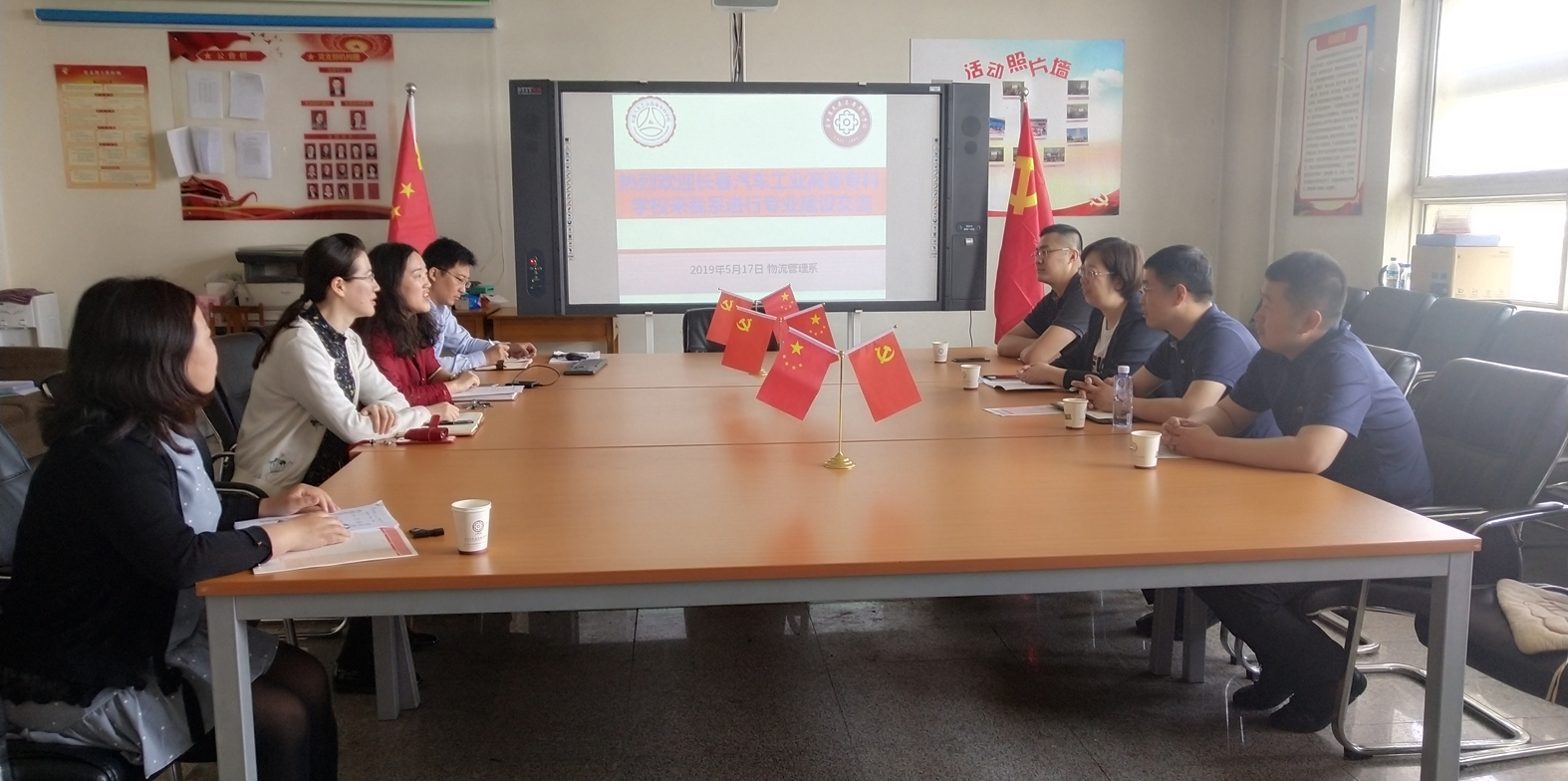 5月17日上午,长春汽车工业高等专科学校汽车营销学院副院长任玲、技能名师朱久安、物流管理专业主任郑治一行3人来我系进行物流管理专业建设交流学习,系主任孔月红、书记胡洋、副主任张宇、专业主任张冰华接待了来访客人。在物流系会议室,孔月红主任就我系办学历程、办学特色、育人目标、办学成果等情况向来访客人进行了介绍。我校物流管理专业“理实交互”人才培养模式让兄弟院校领导和老师耳目一新,尤其是以物流管理专业仓...