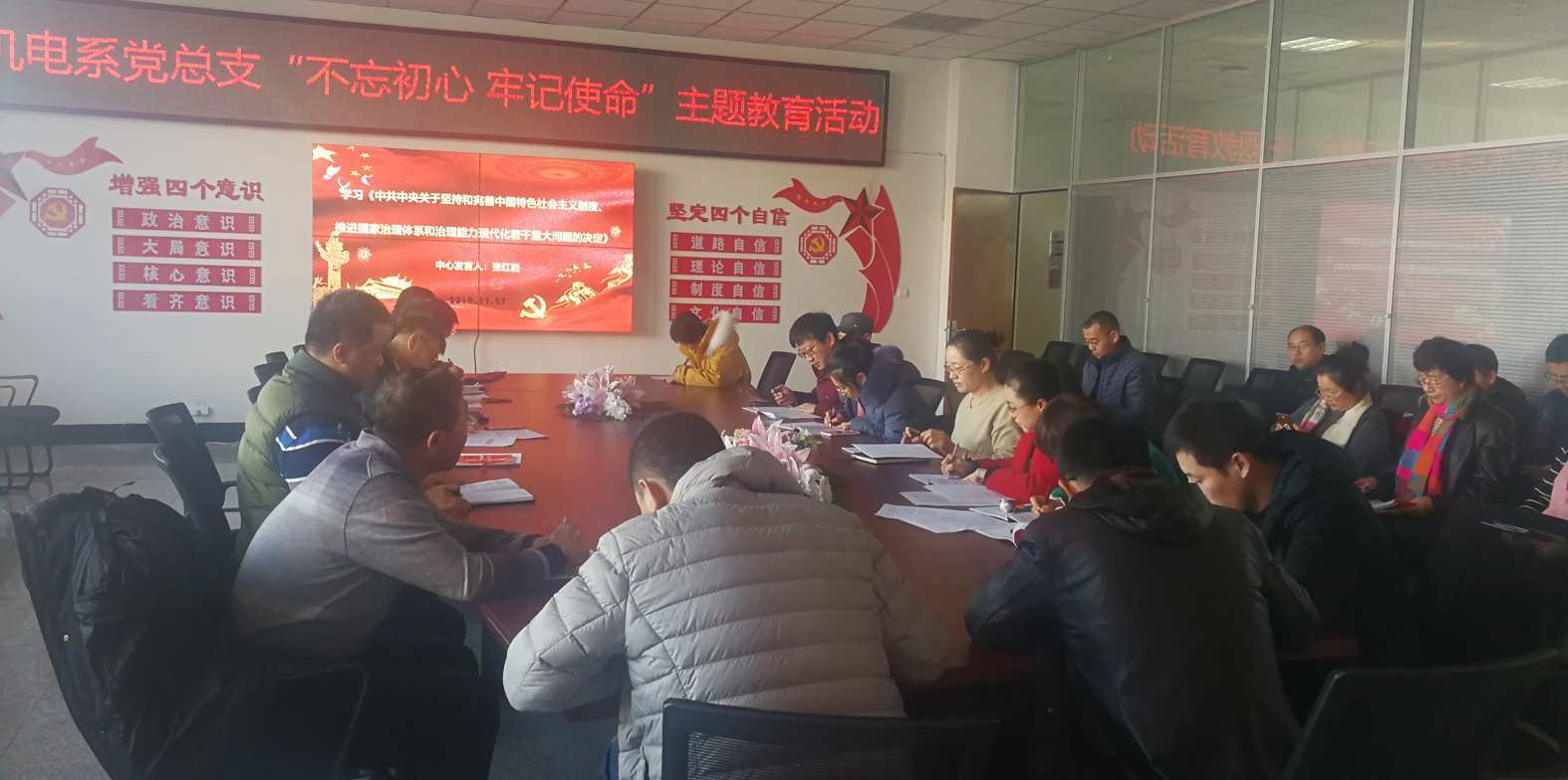根据校党委统一部署和组织部的具体要求,建工系于11月27日在4楼会议室组织召开了“不忘初心、牢记使命”主题教育集中学习研讨会。建工系全体教工党员参加了会议,建工系总支书记张颂娟主持会议。会议包括两项内容,一是学习张贵斌同志先进事迹和《中共中央关于坚持和完善中国特色社会主义制度 推进国家治理体系和治理能力现代化若干重大问题的决定》;二是张颂娟书记和各支部书记向大会报告个人学习体会。首先由系副书记王亮分...