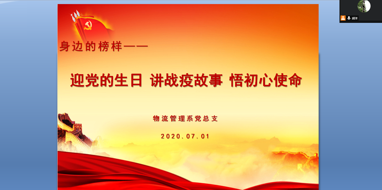 7月1日,物流系党总支以“迎党的生日、讲战役故事、悟初心使命”为主题,召开组织生活会。胡洋书记主持会议,全体教职工参加。2020年的这个春天,突如其来的疫情席卷了全国,深刻地影响了每一个人的生活。为应对此次疫情,从中央至地方各级党组织迅速行动、率先垂范、统一部署,所有人都为疫情防控付出了巨大的牺牲与努力。疫情期间,我系全体教师齐心协力,充分发挥了基层党组织的战斗堡垒作用,认真组织线上教学,严格落实学...
