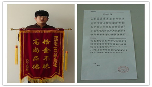 拾金不昧展美德 道德高尚树榜样——记机电系宋峰伟同学拾金不昧