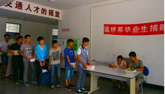 在我校毕业生即将离校之际,为做好毕业生文明离校工作,道桥系举办了毕业生爱心捐赠活动,号召全系毕业生将不需要的图书、文具、旧衣物等捐出来。
