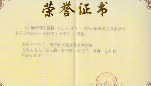 仪玉莉教授主编的教材获2014年度物流职业教育优秀教学成果一等奖