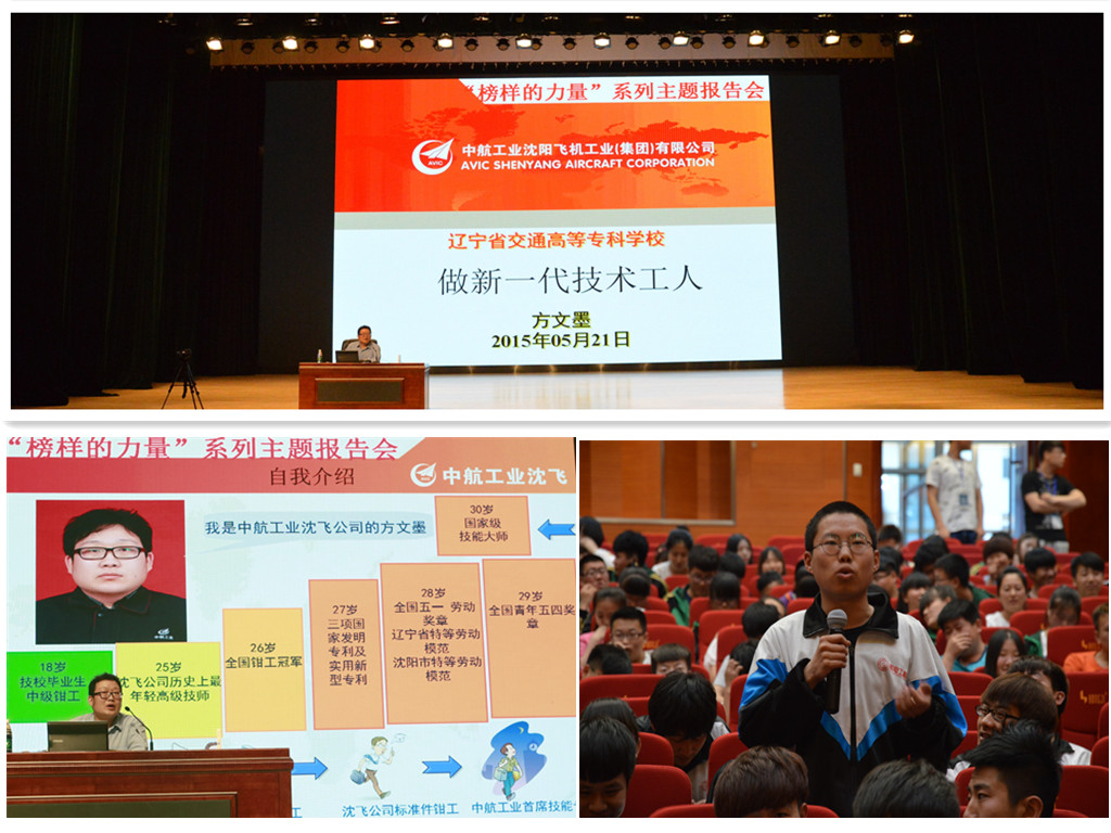 校团委按照纪念五四运动96周年和职教周宣传和教育工作的部署,“‘榜样的力量’系列主题报告会之二做新一代技术工人”于2015年5月21日晚17:30,在礼堂如期举行。