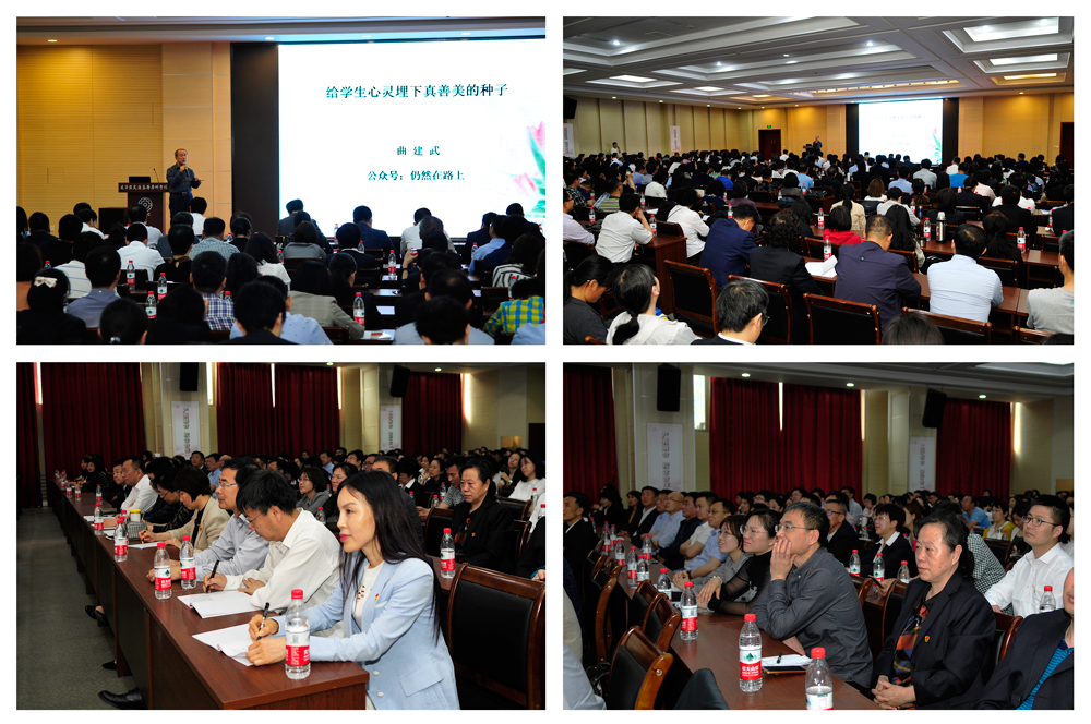 曲建武教授的报告在持久热烈的掌声中结束,与会校领导、全体辅导员与曲建武教授合影留念。