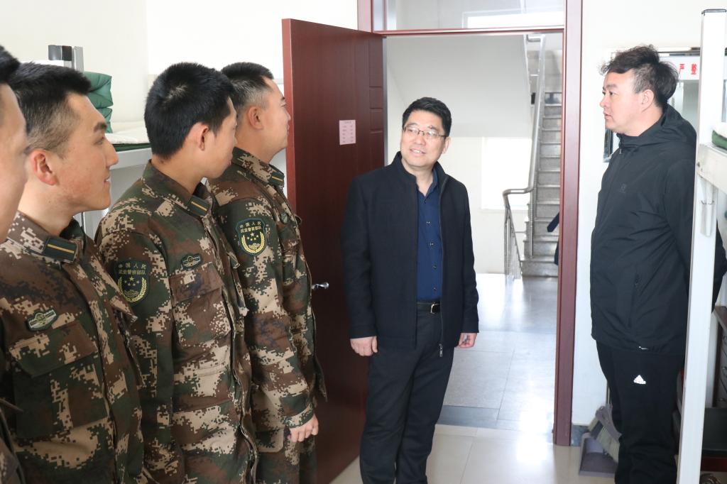 4月7日,在我校2016级203名武警直招士官圆满完成毕业集训即将分赴全国各武警总队报到之际,校学生工作部部长张洪革、学生管理处副处长王楠、信息工程系党总支书记刘长利、党总支副书记李闯、汽车工程系党总支副书记惠有利、影视动画专业主任马洪伟、数字媒体专业教师张昉、汽车系士官班辅导员朱尚功、驻校教官一行11人,在武警抚顺支队副支队长丁仁志、总队人力资源处干事郝召然的陪同下,来到武警抚顺支队教导队看望全体士官班学生,送上了学校和武警总队领导、师生员工的祝福和殷切期望。