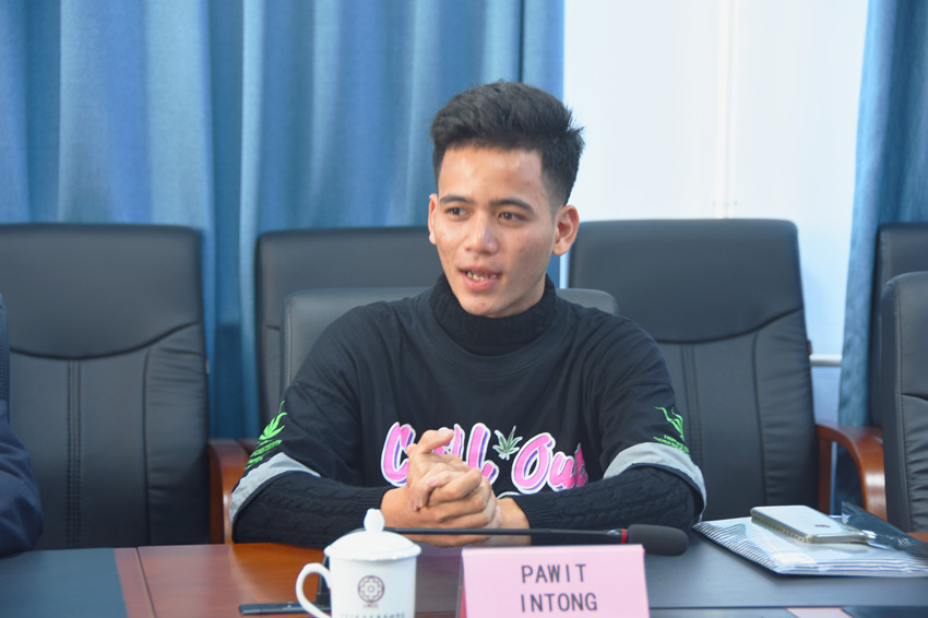 留学生代表周详(中文名)同学对我校能够提供此次留学机会表示感谢,并希望和同学们一起努力,在交专度过愉快的学习时光,充分发挥交流的价值,增进中泰友谊。
