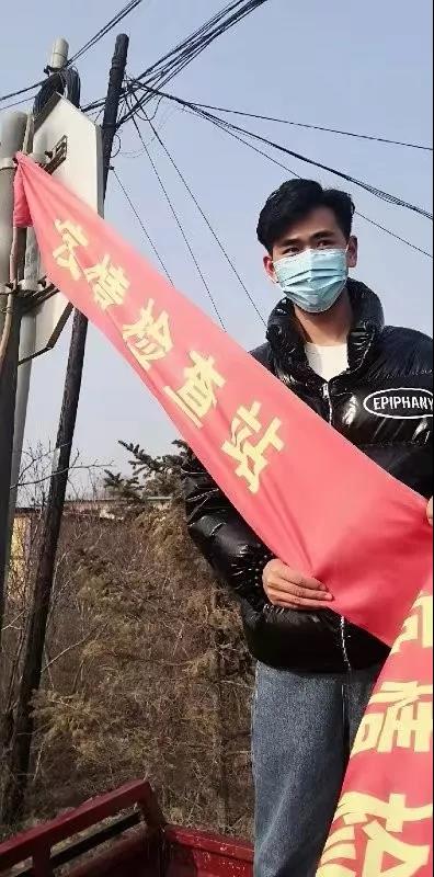 包世龙同学的家乡在阜新蒙古族自治县平安地镇黑石营子村,疫情发生后,听说村里在招护村防控志愿者,他只有一个想法那就是这件事他要去做!他必须去做!后来了解到志愿者都是党员身份,他主动找与村里领导沟通,希望给他这个机会让他为大家尽一份力,最终成为一名疫情防控的志愿者!