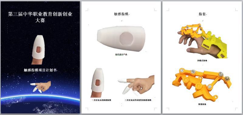 2019年11月18日,由中华职业教育社主办,教育部、人力资源和社会保障部指导的第三届中华职业教育创新创业大赛在安徽省合肥市成功举办。大赛以“职教育工匠、双创筑梦想”为主题,历时2个月,经过校级初赛、省级复赛、全国网上评审,来自 27个省(区、市)的111所职业院校的122个项目入围了全国现场总决赛,近900名师生参加了现场总决赛。经过激烈的角逐,由信息系与汽车系共同选送的“触感指模”项目,在国赛中获得了铜奖的好成绩,填补了我校在这一赛事上的空白。