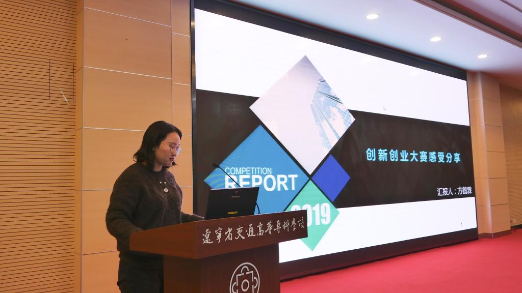 会议对我校2019年创新创业竞赛中涌现出来的先进集体、优秀指导教师以及优秀团队项目进行了表彰。第五届辽宁省“互联网+”大学生创新创业大赛职教赛道银奖项目《混凝土强度检测评估系统》项目负责人方鹤霖同学代表所有参赛队员介绍了团队从组建到逐步完善项目,最后进军国家级赛事的经历,并分享了她通过参与科创研究、创新创业竞赛所取得的收获。优秀指导教师物流系张璠老师、信息系徐阳老师为全体师生做了精彩的创新创业竞赛经验分享。