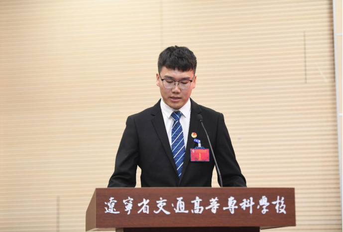 李金宇同学代表沈阳市学生联合会向大会胜利召开表示热烈祝贺,希望我校学生会以推进学生会组织改革为抓手,创新组织形式,真正做到全心全意服务广大同学。