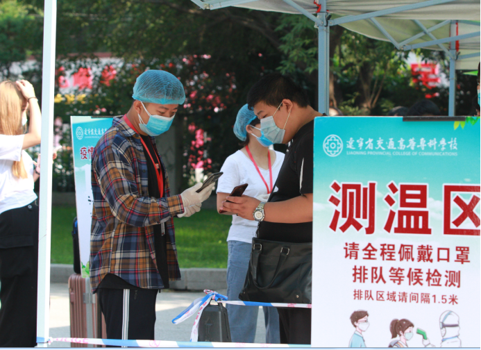 在校门口迎新通道,来自哈尔滨的小金同学打开“辽宁交专服务大厅”微信小程序,打开实时动态生成的“返校健康码”进行扫码,验证成功后,老师的一声问候“欢迎回家”,学生顺利入校。