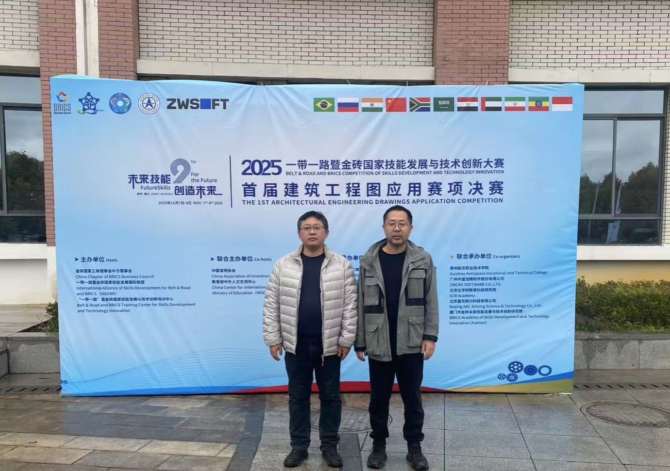 117日至92025一带一路暨金砖国家技能发展与技术创新大赛之首届建筑工程图应用赛项决赛在贵州航天职业技术学院顺利落幕。建筑工程系武斌、薛忠泉两位教师组成参赛队伍,在全国28支参赛队伍的激烈比拼中表现出色,最终荣获三等奖。