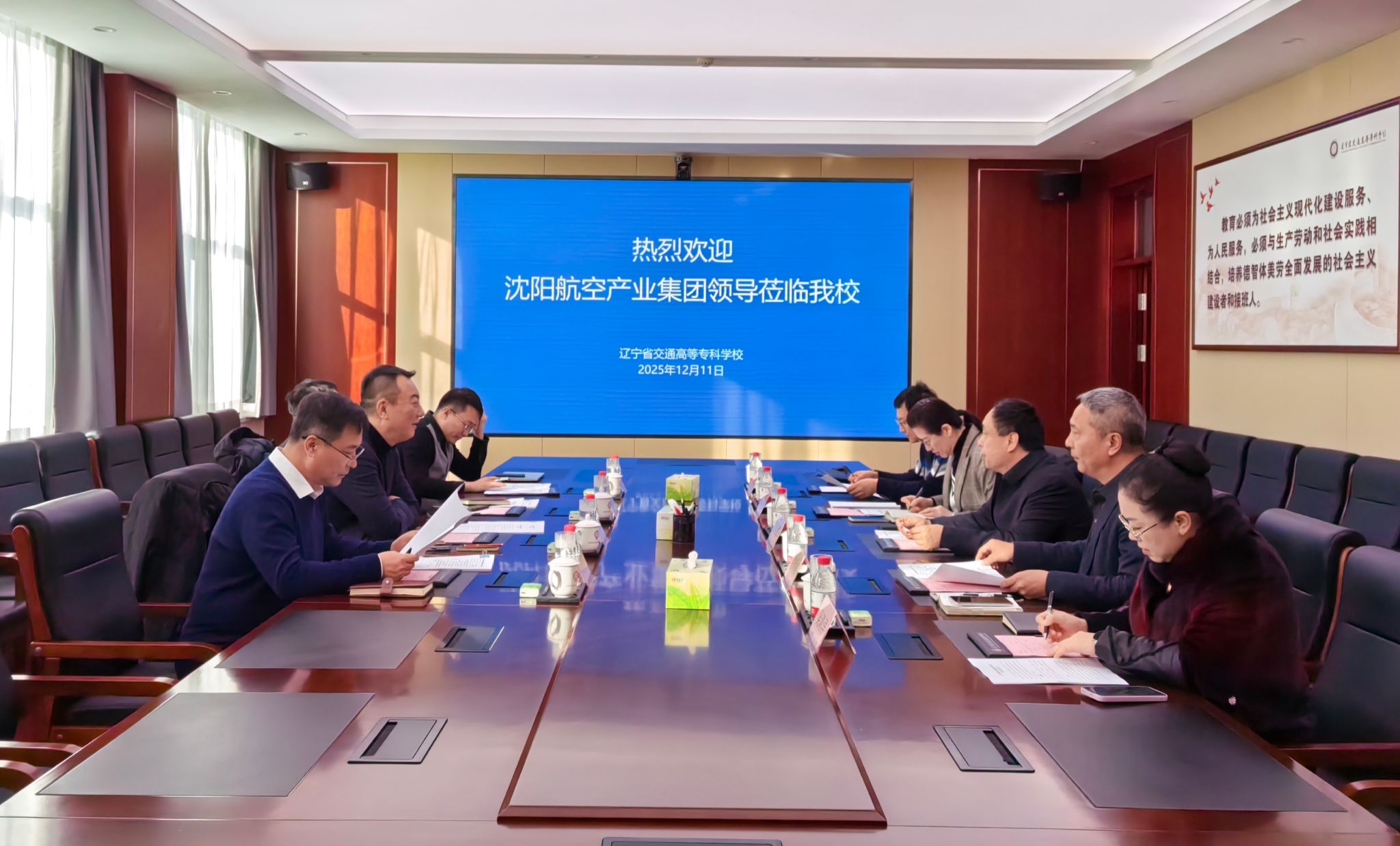 12月11日,沈阳航空产业集团副总经理徐晓东一行莅临我校洽谈校企合作相关事宜。校长孙延鹏、副校长张洪革出席会议,相关职能部门及教学部门负责人参与座谈。