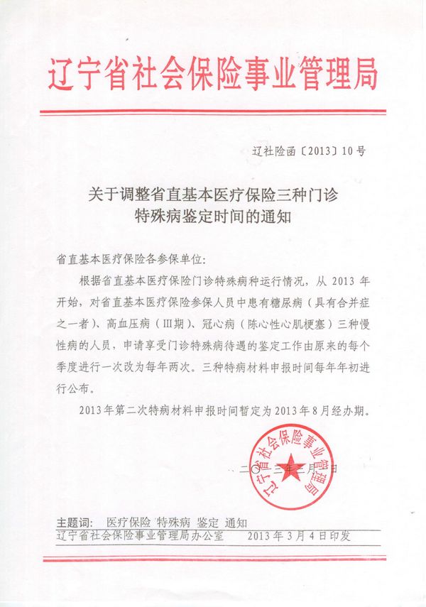 关于调整省直基本医疗保险三种门诊特殊病鉴定时间的通知