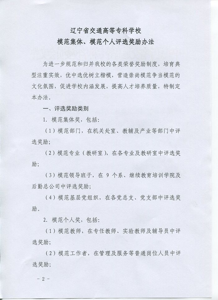 关于印发《模范集体、模范个人评选奖励办法》的通知(辽交专党发[2014]10号)