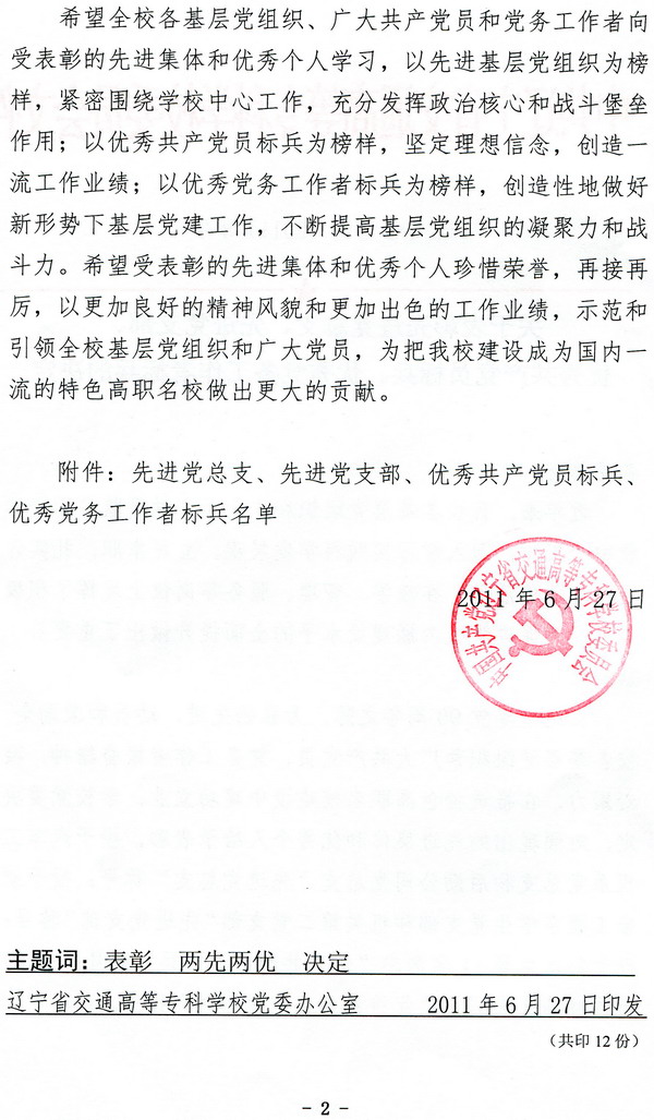 关于表彰先进党总支、先进党支部、优秀共产党员标兵、优秀党务工作者标兵的决定
