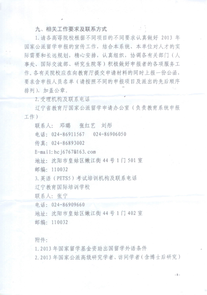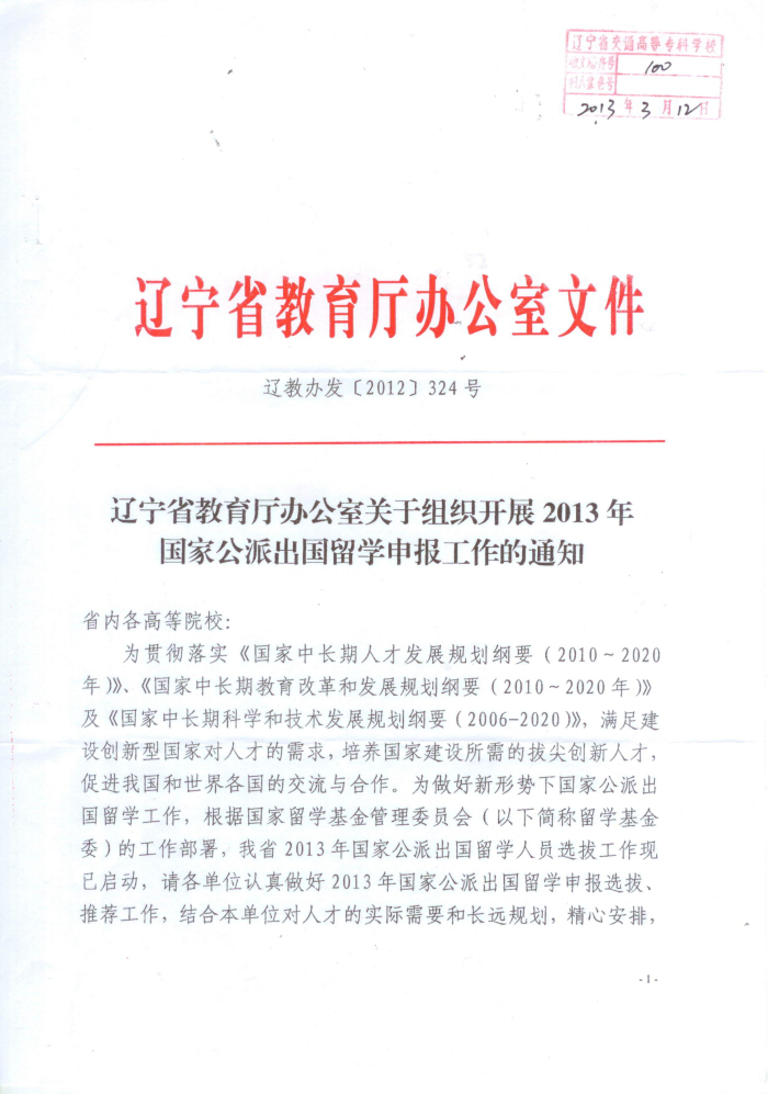 根据《辽宁省教育厅办公室关于组织开展2013年国家公派出国留学申报工作的通知》辽教办发【2012】324号文件要求,为进一步提高教师教学和科研能力,学校组织2013年国家公派出国留学项目——高级访问学者和访问学者的申报工作,请各系部认真按照《通知》中的要求做好申报工作。