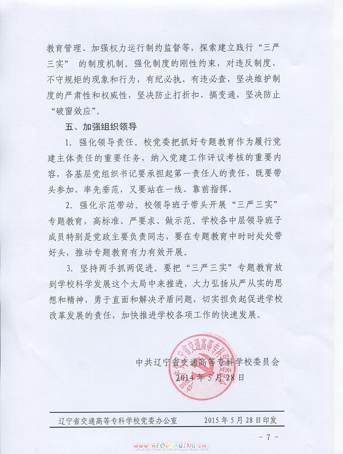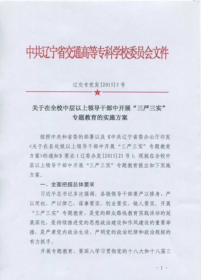 关于印发《在全校中层以上领导干部中开展“三严三实”专题教育的实施方案》的通知辽交专党发[2015]5