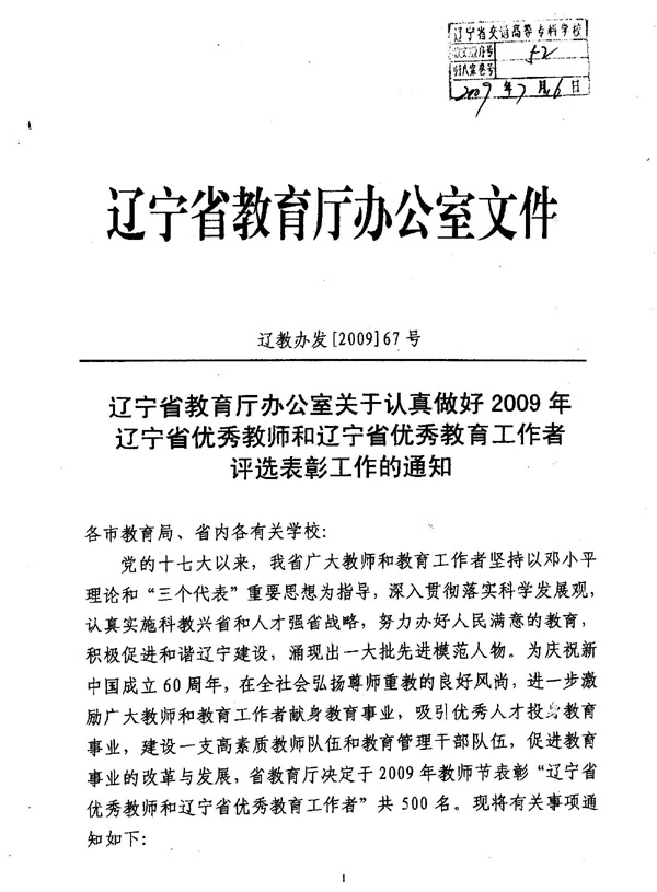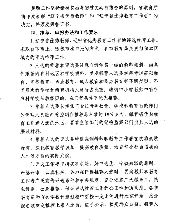 按照辽宁省教育厅办公室文件通知要求,我校拟推荐 “辽宁省优秀教师”和“辽宁省优秀教育工作者”候选人,现将评选的有关要求通知如下: